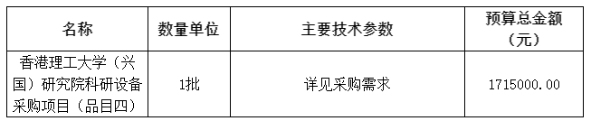 项目名称:香港理工大学(兴国)研究院科研设备采购项目(品目四)